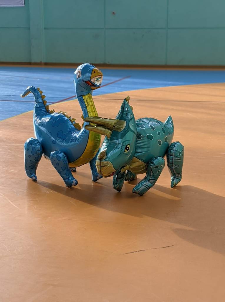 | – Dinosaures gonflables – 3 haies – 3 cerceaux – Un but popup – Ballons – 4 paires d’échasses – 3 plots | – S’équilibrer – Tirer |