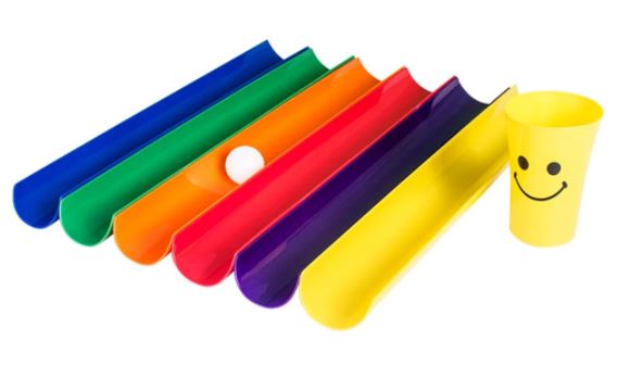 Au signal de l’entraineur, la balle est déposée dans la gouttière du premier enfant. L’enfant doit faire rouler la balle jusqu’à la gouttière de l’enfant suivant.