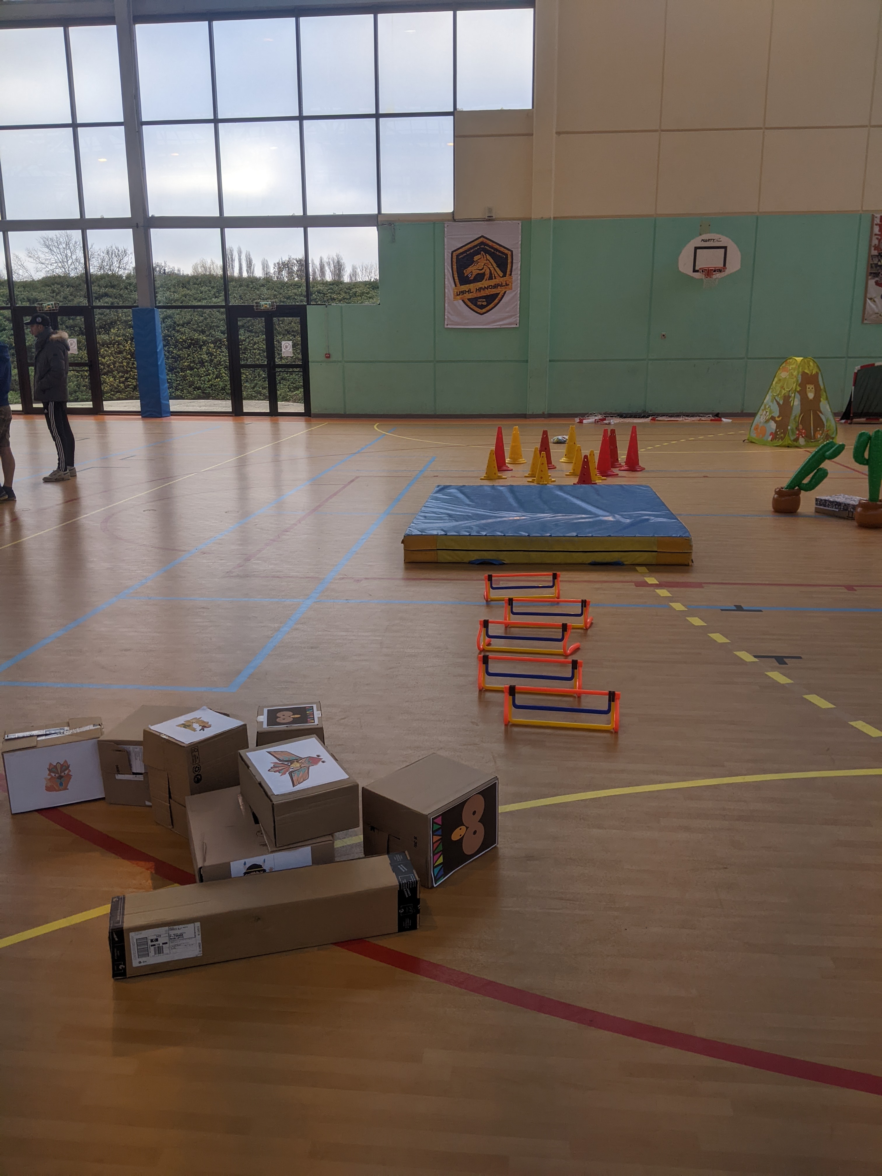 - Un parcours d’obstacles avec une pile de cartons au final.