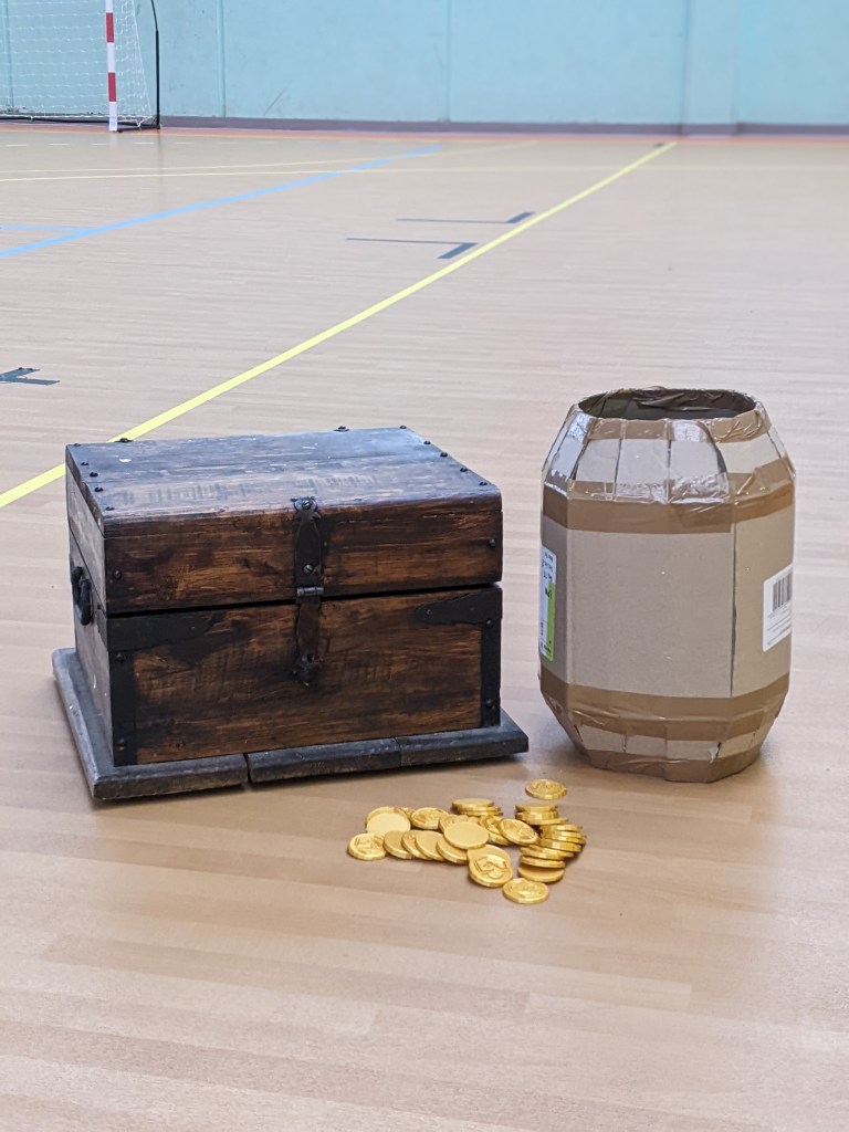 En bout de parcours, les enfants récupèrent une pièce d’or chacun et la dépose dans leur coffre.