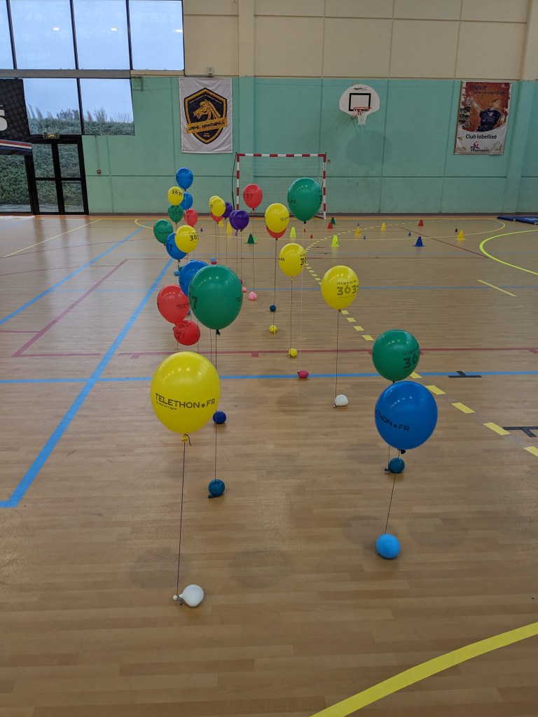 Disposer un grand nombre de plot en fin de parcours et le même nombre de ballon gonflé à l’hélium en début de parcours.