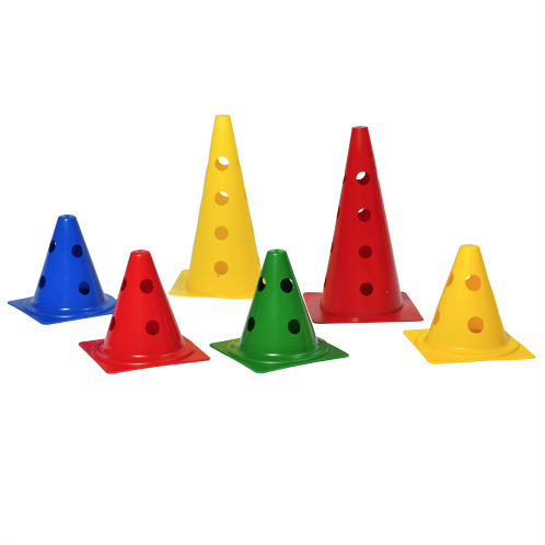 Les cônes permettent de délimiter des zones de jeu. Ils permettent aussi de faire des cibles pour le tir. Percés, il est possible d’ajouter des barres pour faire des obstacles.